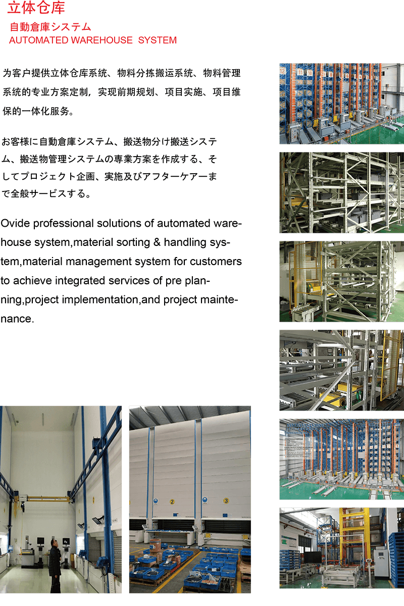 সংস্থাটি স্বয়ংক্রিয় ত্রি-মাত্রিক গুদাম সিস্টেম, উপাদান বাছাই এবং হ্যান্ডলিং সিস্টেম এবং উপাদান পরিচালনার সিস্টেমগুলির জন্য পেশাদার সমাধান সরবরাহে বিশেষজ্ঞ। এই সমাধানগুলি সম্পূর্ণরূপে সংহত হয়েছে, এটি নিশ্চিত করে যে প্রক্রিয়াটির প্রতিটি পর্যায়, নকশা এবং বাস্তবায়ন থেকে চলমান সমর্থন পর্যন্ত আচ্ছাদিত রয়েছে। ক্লায়েন্টের প্রয়োজনের গভীর বোঝার সাথে, ওক্সি হুইকিয়ান এর পরিষেবাগুলি কাস্টমাইজযোগ্য, এটি নিশ্চিত করে যে প্রতিটি সিস্টেম অনুকূল পারফরম্যান্সের জন্য তৈরি করা হয়েছে।
