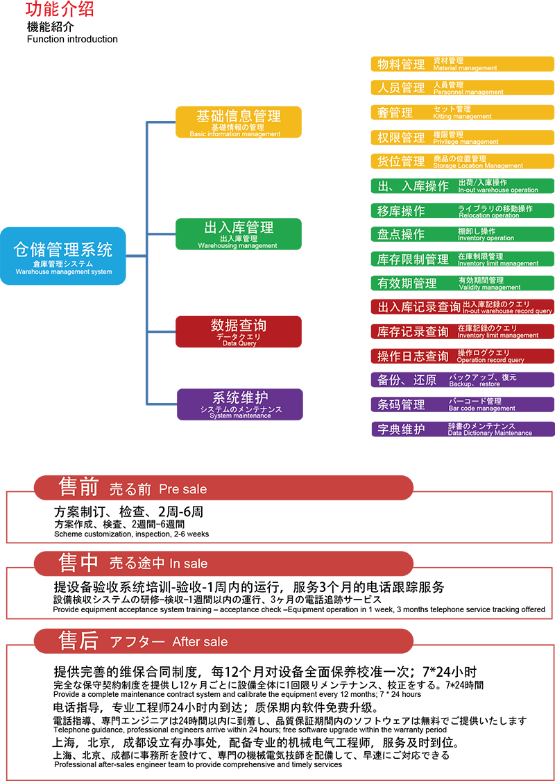 ওক্সি হুইকিয়ানের বিস্তৃত, শেষ-শেষের পরিষেবার প্রতি প্রতিশ্রুতি নিশ্চিত করে যে গ্রাহকরা কেবল উন্নত প্রযুক্তি নয়, তাদের সিস্টেমের জীবনচক্র জুড়ে চলমান সমর্থনও পান। প্রাথমিক পরিকল্পনা থেকে সিস্টেম ডিজাইন, বাস্তবায়ন এবং নিয়মিত রক্ষণাবেক্ষণ পর্যন্ত কোম্পানির উত্সর্গীকৃত দলটি তাদের বিরামবিহীন সংহতকরণ এবং তাদের চলমান অপ্টিমাইজেশন নিশ্চিত করতে ক্লায়েন্টদের সাথে ঘনিষ্ঠভাবে কাজ করে স্বয়ংক্রিয় গুদাম পরিচালনা ব্যবস্থা .
