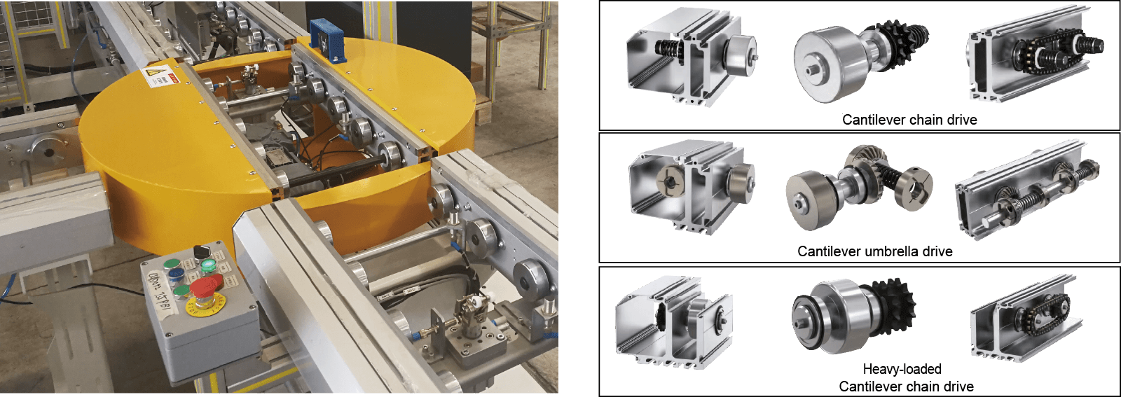 ফ্রিকশন ক্লাচ ট্রান্সমিশন, রোলার এবং চেইন ব্যবহার করে ম্যাক-সি সিরিজের চেইন-চালিত কনভেয়র রোলার রোলারগুলি আপেক্ষিক গতি থাকতে পারে, যাতে পণ্যগুলি থামতে থাকে, পণ্য এবং রোলারদের কোনও ঘর্ষণ করা উচিত নয়।