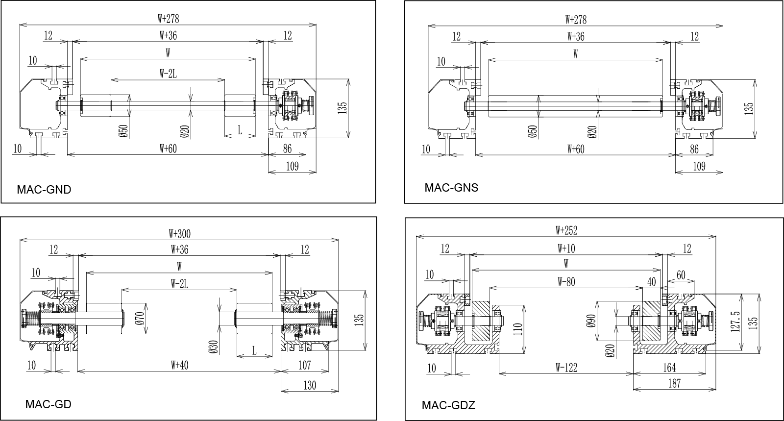 | প্রকার | ম্যাক-জিএনডি (অবিচ্ছিন্ন শ্যাফ্ট টাইপ) | ম্যাক-জিএনএস (ড্রামের ধরণ) | ম্যাক-জিডি (ক্যান্টিলভার্ড স্ট্রাকচার) | ম্যাক-জিডিজেড (ভারী শুল্কের ধরণ) |