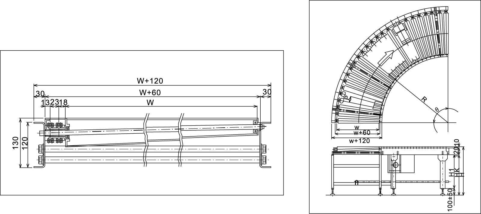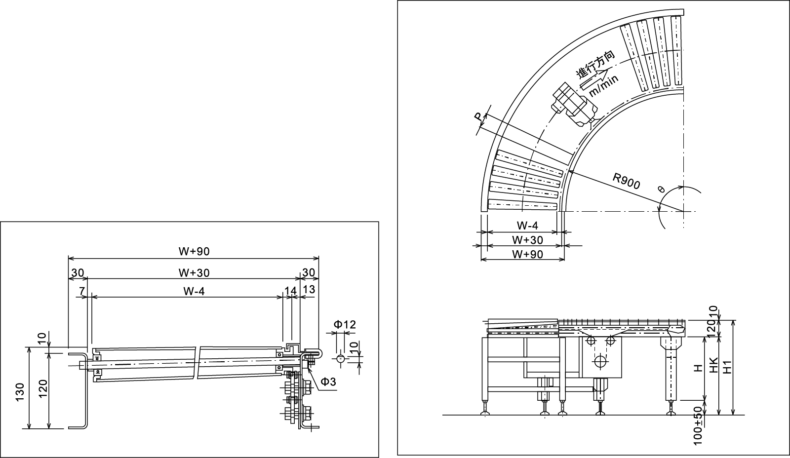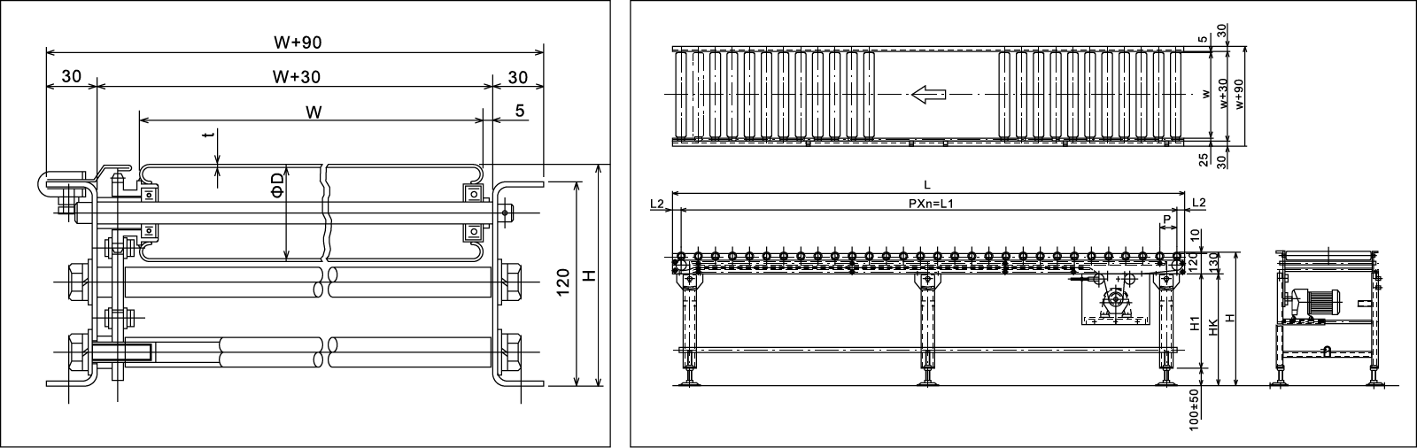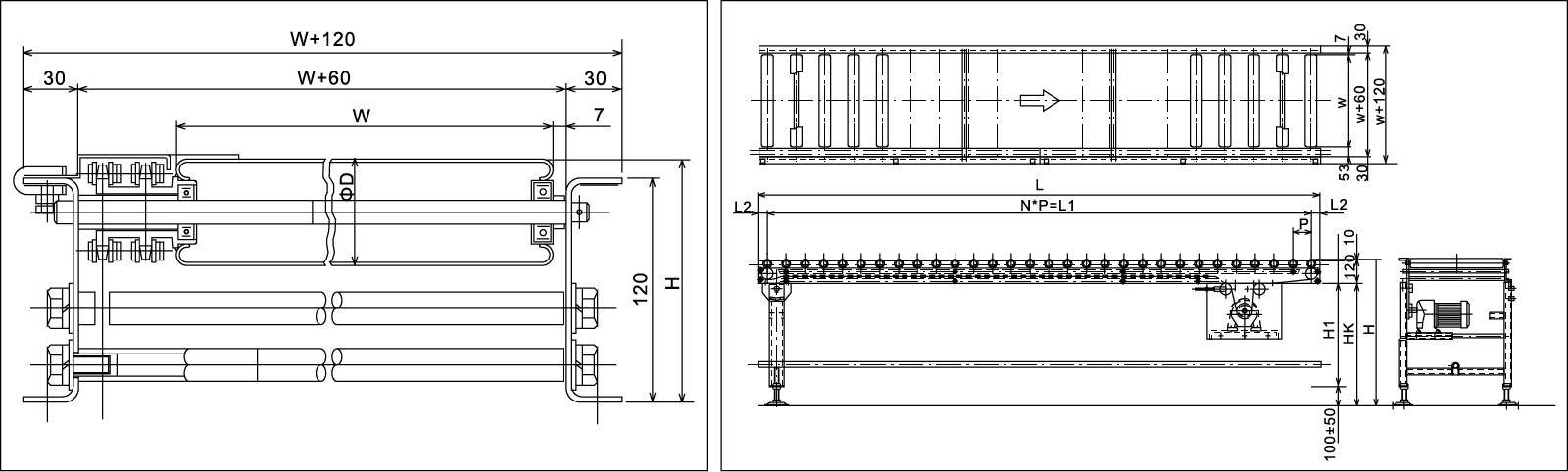 | পরিবাহকের প্রস্থ | ডাব্লু 70 | ডাব্লু 70 (800 এর নীচে প্রস্থ সহ মোটরগুলি বাহ্যিকভাবে মাউন্ট করা হয়েছে) |
