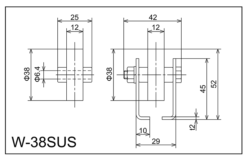| ডাব্লু -38 এসএস | 38x12x6.4x25 | M6x38L | 45x29x10x42x2.0 | 52 | 1800 · 2400 · 3000 | 50 · 75 · 100 · 150 | 20 | A |