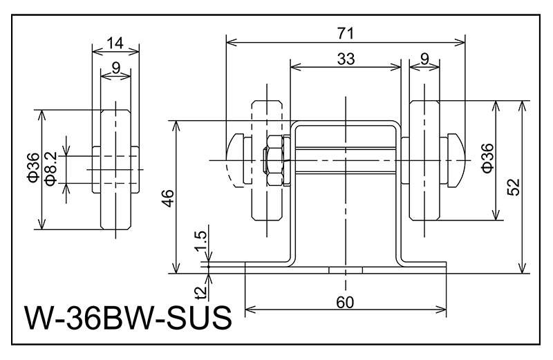 | ডাব্লু -36 বিডাব্লু-সুস | 36x9x8.2x14 | M8x55L | 46x60x33 × 71 1.5 2.0 | 52 | 1800 · 2400 · 3000 | 50 · 75 · 100 · 150 | 40 | K |