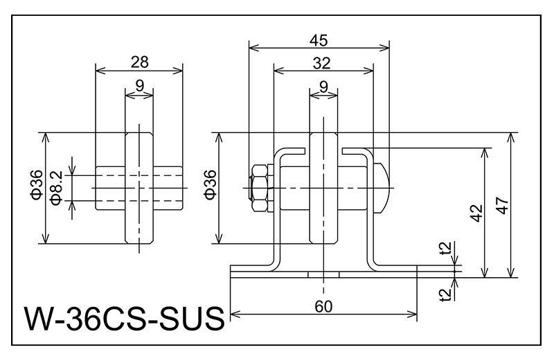 | ডাব্লু -36 সিএস-সুস | 36x9x8.2x28 | M8x40L | 42x60x32x45x2.0 | 47 | 1800 · 2400 · 3000 | 50.75 · 100 · 150 | 40 | J |
