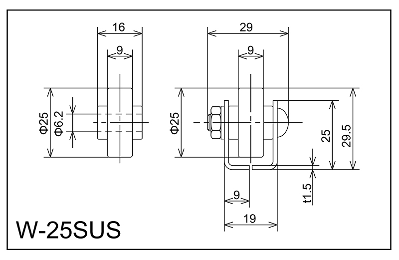 | ডাব্লু -25sus | 25x9x6.2x16 | M6x25L | 25x19x9x29x1.5 | 29.5 | 1000 · 1500 · 2000 | 30 · 35 | 30 | A |